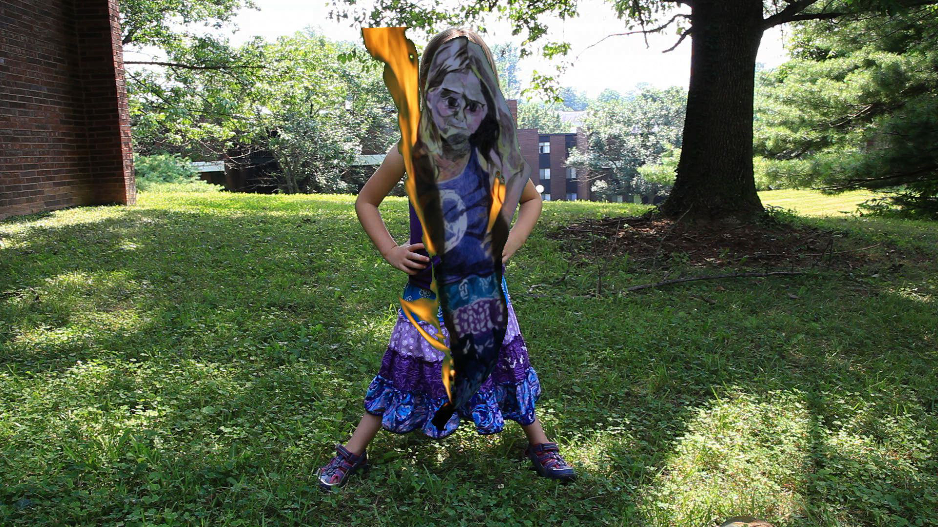 Look At Me, single channel video projection, charcoal on paper, and fur on chicken wire and wood, 16' x 12' x 4'