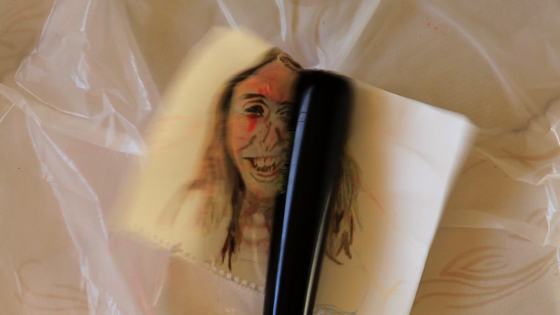 I Hit My Sister With A Bat (A Therapist Told Me To Do It), single channel video on monitor, 3' x 5'